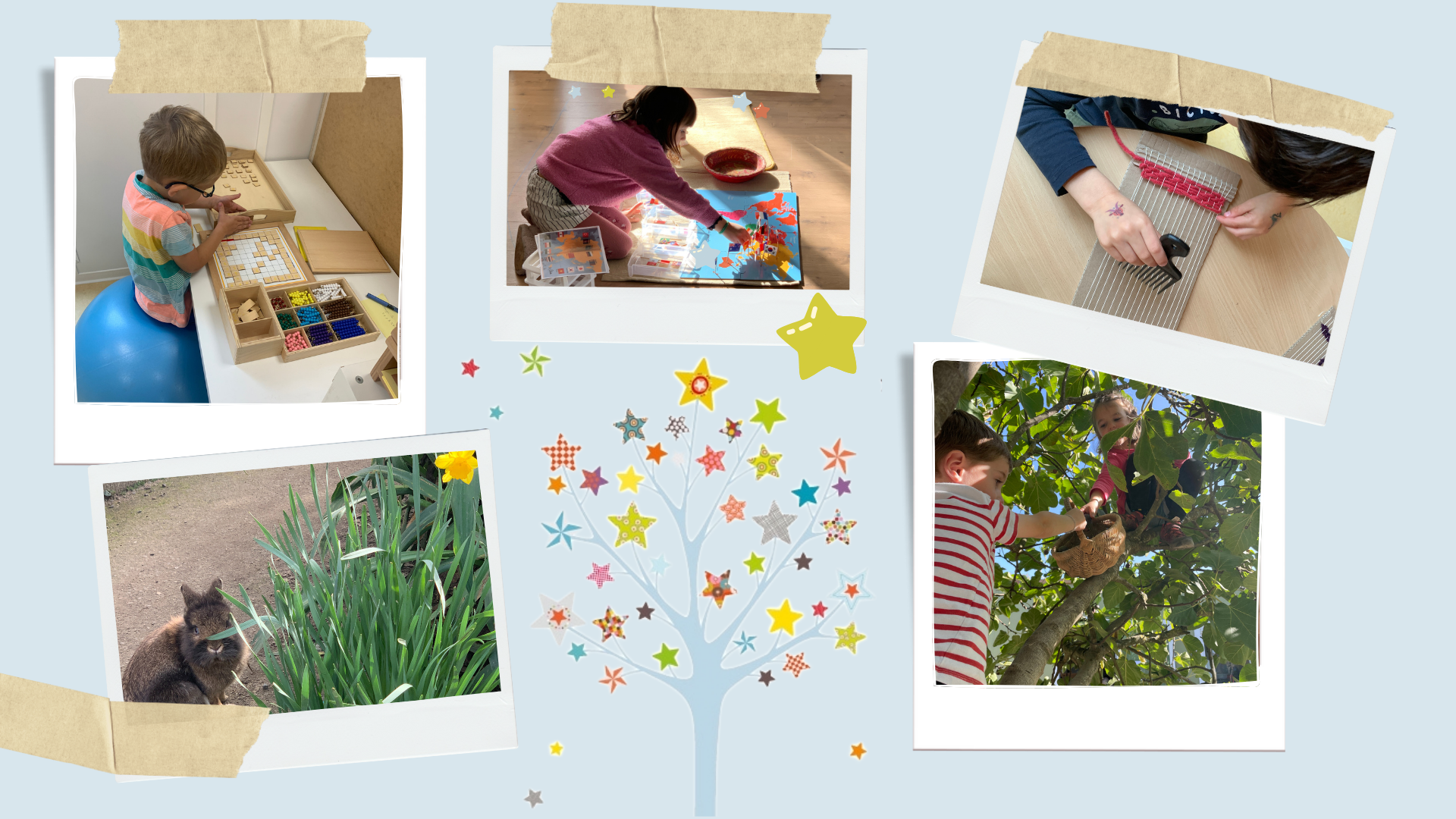 Bienvenue sur le site de l’école Les Petites Étoiles ! Découvrez notre approche éducative basée sur la méthode Montessori (mais pas que), où chaque enfant est encouragé à explorer, apprendre et grandir à son propre rythme. Naviguez sur nos différentes pages pour en apprendre davantage sur notre philosophie, notre équipe dédiée, une journée type à l’école, ainsi que notre établissement à travers notre galerie de photos.
