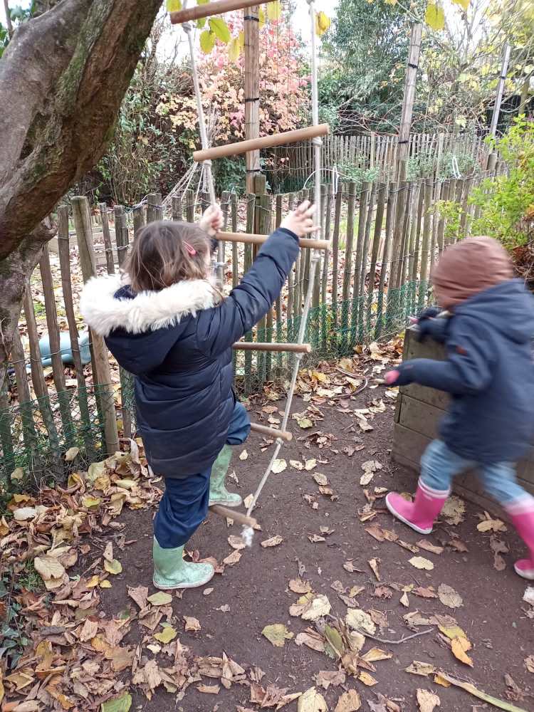 Elle offre des possibilités infinies de jeux psychomoteurs : Le jardin de l’école et la nature de manière générale sont comme une salle de sport : les enfants apprennent à courir, tomber, lancer, attraper, sauter, grimper, améliorer leur équilibre,…