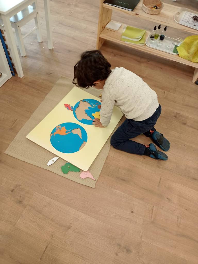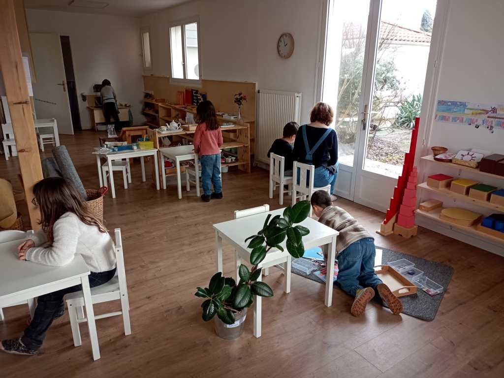 Elle propose un environnement adapté et soigneusement préparé pour que l’enfant puisse aller librement vers ce qu’il a envie d’expérimenter selon ses besoins psychiques du moment.