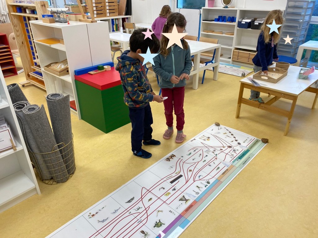 - Dans une ambiance 6-11, les activités ne se restreignent pas à des plateaux comme en 3-6 ans. Les élèves peuvent ainsi piocher tout le matériel qu’ils souhaitent au « coin sciences » par exemple afin de mener leurs propres expériences.