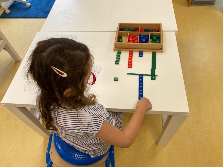 Puis, des présentations individuelles ou en petits groupes sont faites à l’aide du matériel Montessori (manipulation d’objets puis d’images représentant ces objets avant de passer à l’abstrait, comme le préconise la méthode « Singapour » en mathématiques). Les enfants doivent ensuite répéter la manipulation du matériel présenté un certain nombre de fois : la répétition, en effet, a du sens : le cerveau, au fil du temps, ne conservera que les connexions fréquemment utilisées ou celles consolidées par une coloration émotionnelle. Il est donc fondamental de répéter les nouvelles notions acquises et de reproduire à plusieurs reprises certains exercices de manière à automatiser les connaissances ou la démarche.