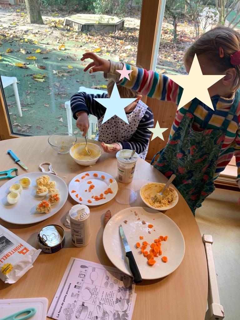 - Éducation au « bien manger » : choix de menu et préparation de repas collectif